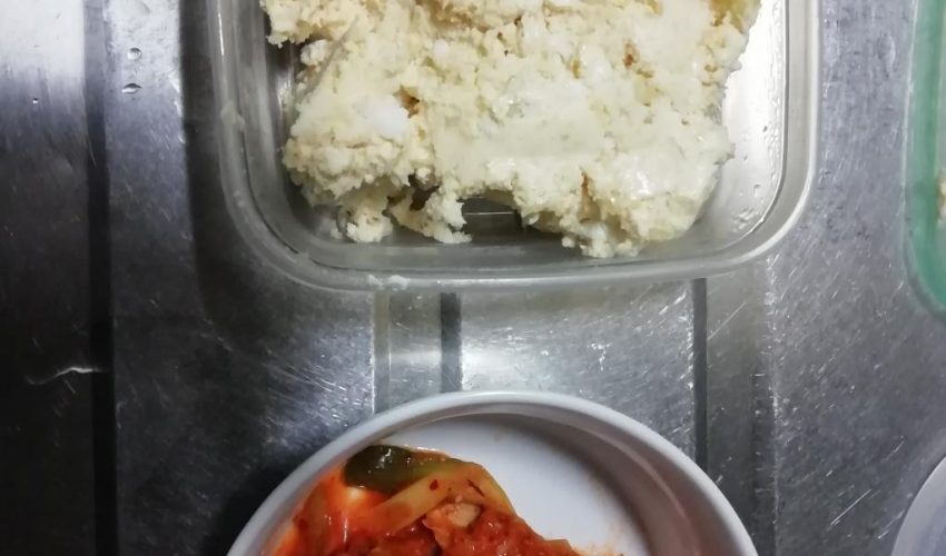 本日の離乳食は作っていません!しかし、普段からストックしている食材とともに、出来立てのおからもあげました!