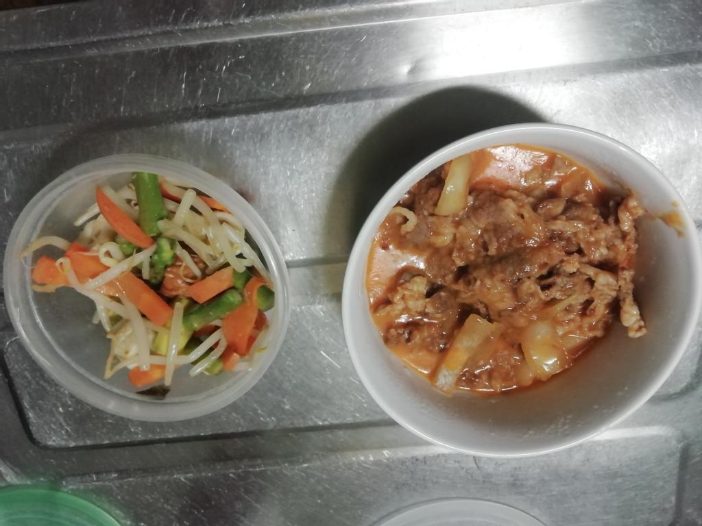 ・もやし、アスパラ、にんじん、ちくわの野菜炒め