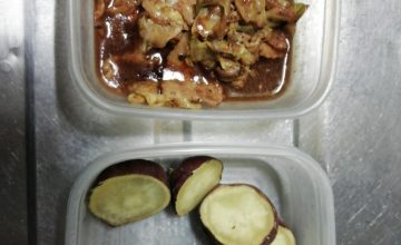 共働き子育て夫婦 本日の食卓・ホイコウロウ(豚肉・キャベツ)・さつまいも・キムチスープ(昨日の残り)(じゃがいも・たまねぎ・にんにく…